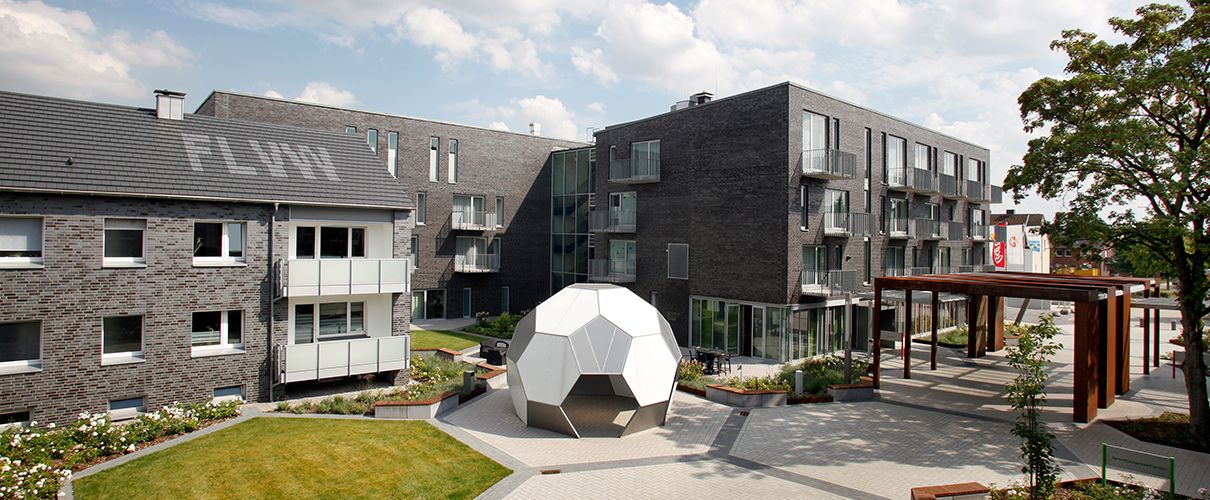 Krönender Höhepunkt ist die zentrale Fußballskulptur, die dem Platz ein markantes, spielerisches Gesicht verleiht. Sie verbindet alle Elemente zu einem harmonischen Ganzen und gibt den Außenanlagen eine Energie, die Sport, Begegnung und Erholung miteinander verschmelzen lässt. So entsteht ein Ort, der weit mehr ist als ein Eingangsbereich – ein lebendiger Raum, der Bewegung spürbar macht, zum Verweilen einlädt und die Dynamik des Sportzentrums erlebbar werden lässt.