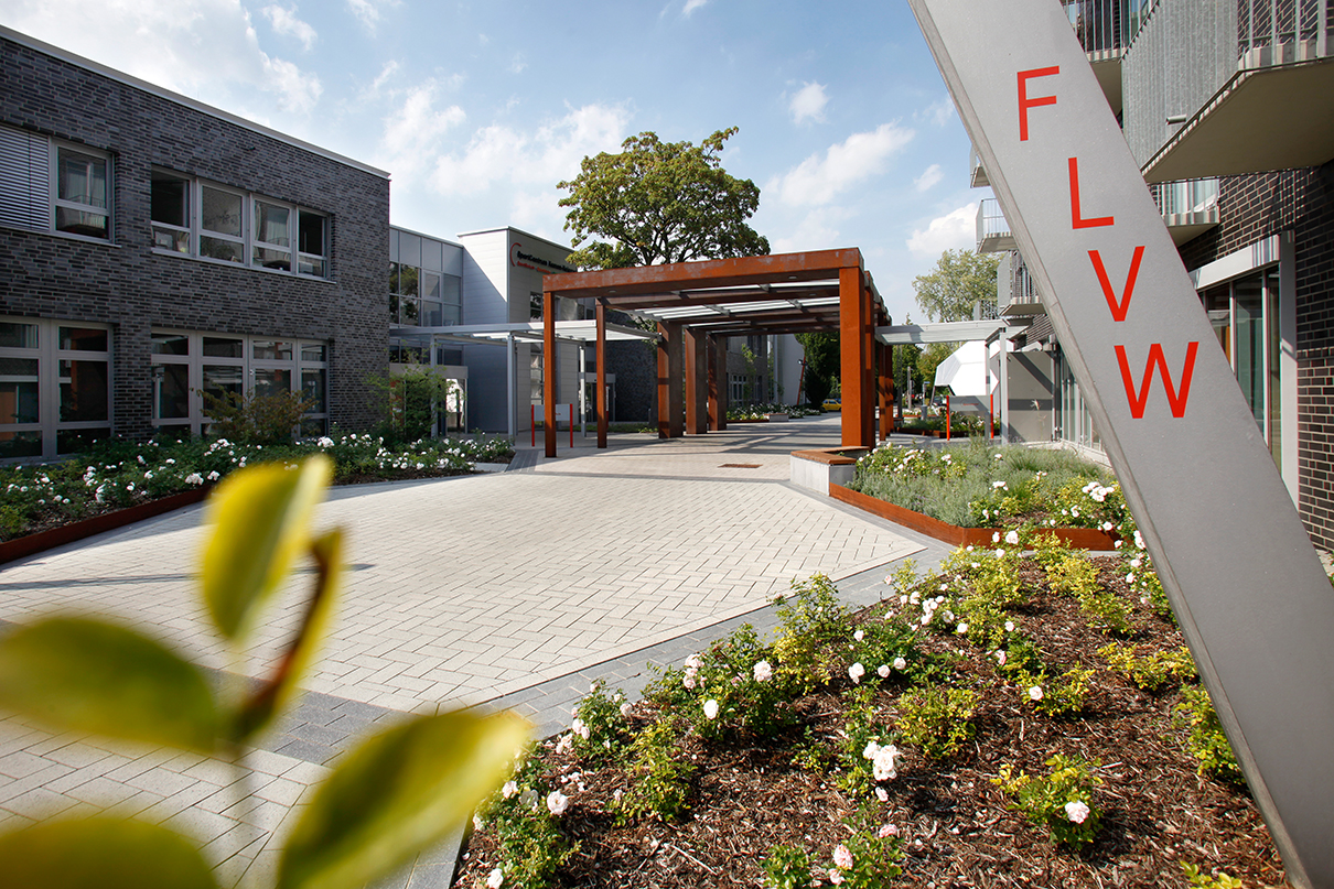 Die Außenanlagen des Sportzentrums Kaiserau in Kamen verwandeln die Eingangsbereiche von Zentrum und Hotel in einen lebendigen Ort voller Bewegung und Begegnung. Die Wege, Plätze und Aufenthaltsbereiche verbinden Funktion und Gestaltung auf spielerische Weise und schaffen ein einladendes Ensemble.