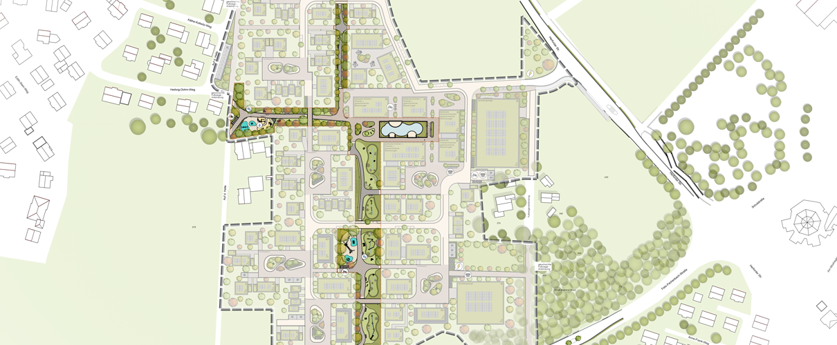 Mit dem neuen Grünzug entsteht ein Freiraum, der Kinder, Erwachsene und Nachbarschaften gleichermaßen einlädt. Geplant sind zwei Spielplatzflächen für unterschiedliche Altersgruppen, eine Fitnesszone sowie kleine Aufenthaltsbereiche und Besucherfahrradstellplätze, die den Grünzug zu einem lebendigen Treffpunkt machen.