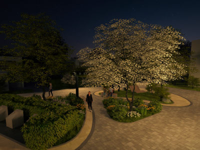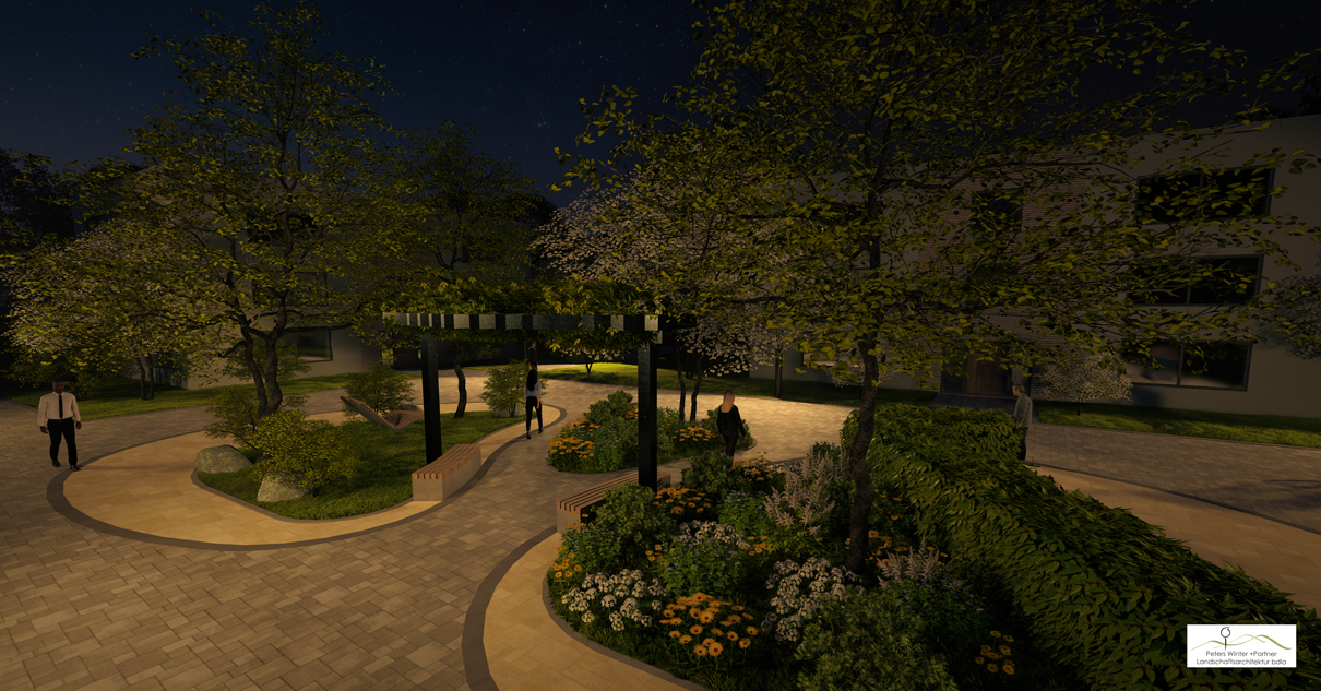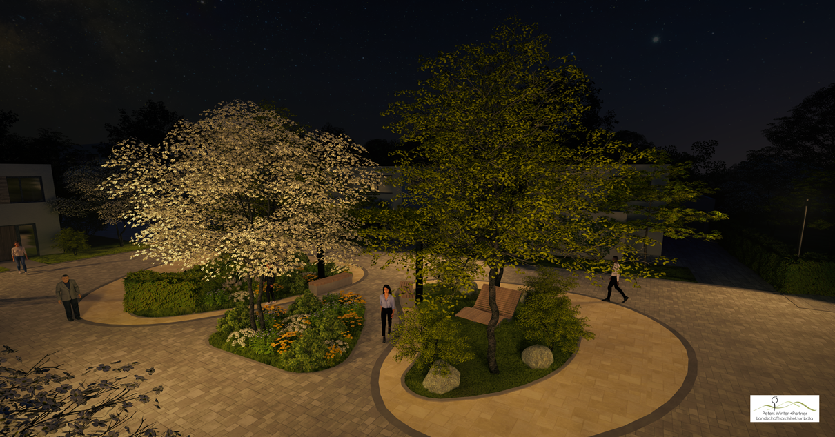 Im Zentrum steht das Konzept der „grünen Inseln“. Sie gliedern die Plätze in unterschiedliche Bereiche, durchbrechen das Pflaster mit geschwungenen Wegen und schaffen Orte, an denen Menschen verweilen, sich begegnen und den Alltag für einen Moment hinter sich lassen können. Offene Flächen, abwechslungsreiche Bepflanzungen und bewusst gestaltete Wege erzeugen spannende Blickbeziehungen und laden zum Erkunden ein.