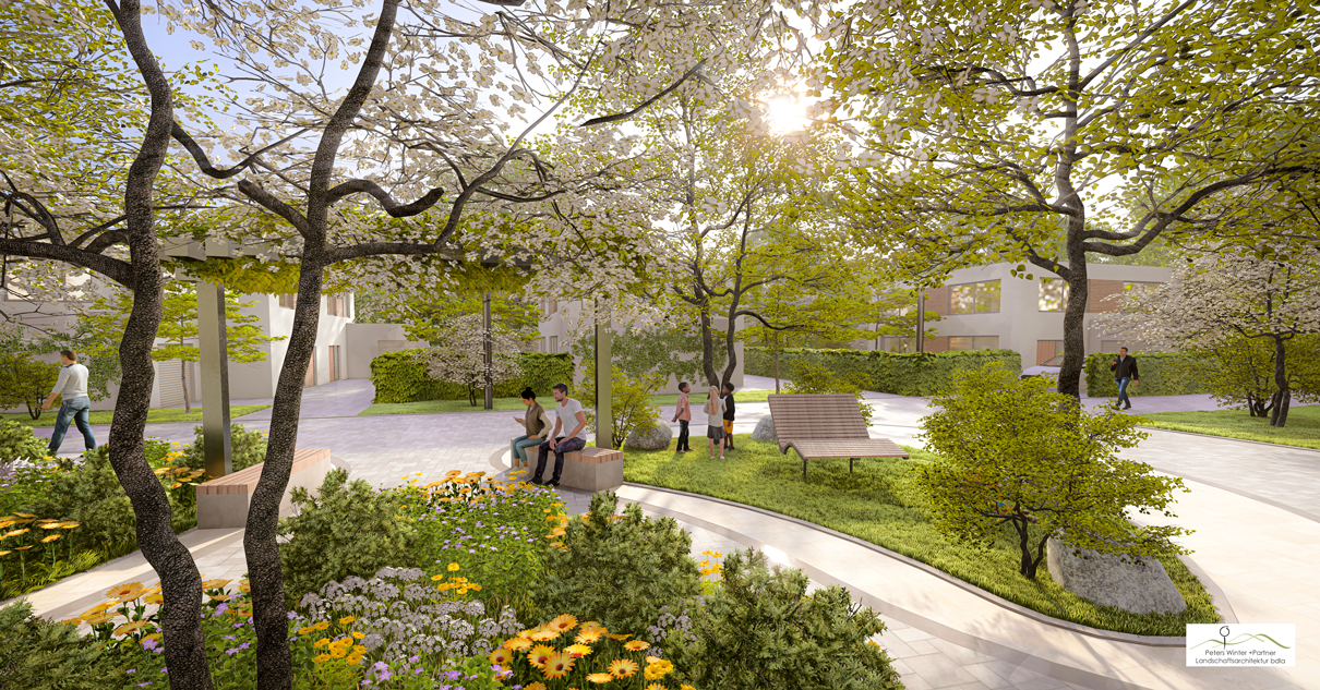 Die Quartiersplätze verbinden soziale, funktionale und ökologische Ziele auf harmonische Weise. Sie stärken die Identität des Quartiers, schaffen Aufenthaltsqualität, bieten Treffpunkte für Begegnungen und regen Fantasie und Spiel an. Gleichzeitig tragen sie zur Klimaanpassung bei, fördern die Artenvielfalt und ermöglichen nachhaltige Entwässerung. So entstehen lebendige Räume, die von Kindern, Erwachsenen und Nachbarschaften gleichermaßen genutzt und geschätzt werden und das Quartier in seiner Gesamtheit prägen.
