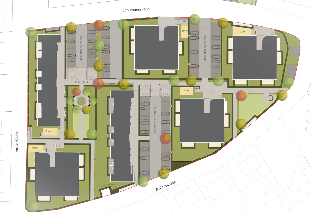 Mitten zwischen Schumannstraße, Brahmsstraße und Händelstraße entstand in Lemgo das neue Musikerviertel – ein Quartier, das modernes Wohnen mit attraktiven Außenanlagen verbindet. Sechs neue Wohngebäude fügen sich in ein harmonisches Gesamtkonzept ein, dass Grünflächen, Wege und Aufenthaltsbereiche miteinander verknüpft.