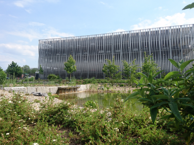 Im Rahmen des Neubauvorhabens wurden die Außenanlagen des Komplexes komplett neu gestaltet und in verschiedene Bereiche gegliedert, die zu Bewegung, Entspannung und Entdeckungen einladen.