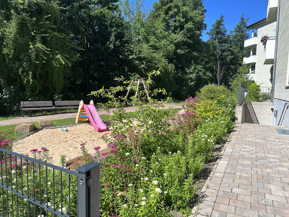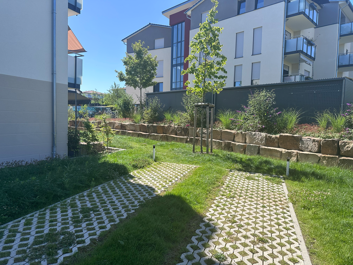Die Neugestaltung vereint ästhetische Gestaltung, Funktionalität und Naturnähe und macht die Außenanlagen zu einem einladenden Lebensraum für Bewohner jeden Alters.