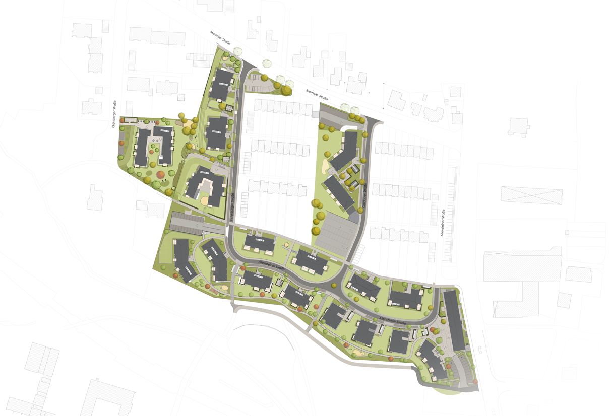 Die neuen Wohnbauten an der Allensteiner Straße, Insterburger Straße und Goldaper Straße wurden aufeinanderfolgend geplant und realisiert. Die schrittweise Entwicklung der einzelnen Grundstücke stellte dabei eine spannende planerische Herausforderung dar, die durch ein bewusst fortgeführtes und erweitertes Gestaltungskonzept erfolgreich gemeistert wurde.