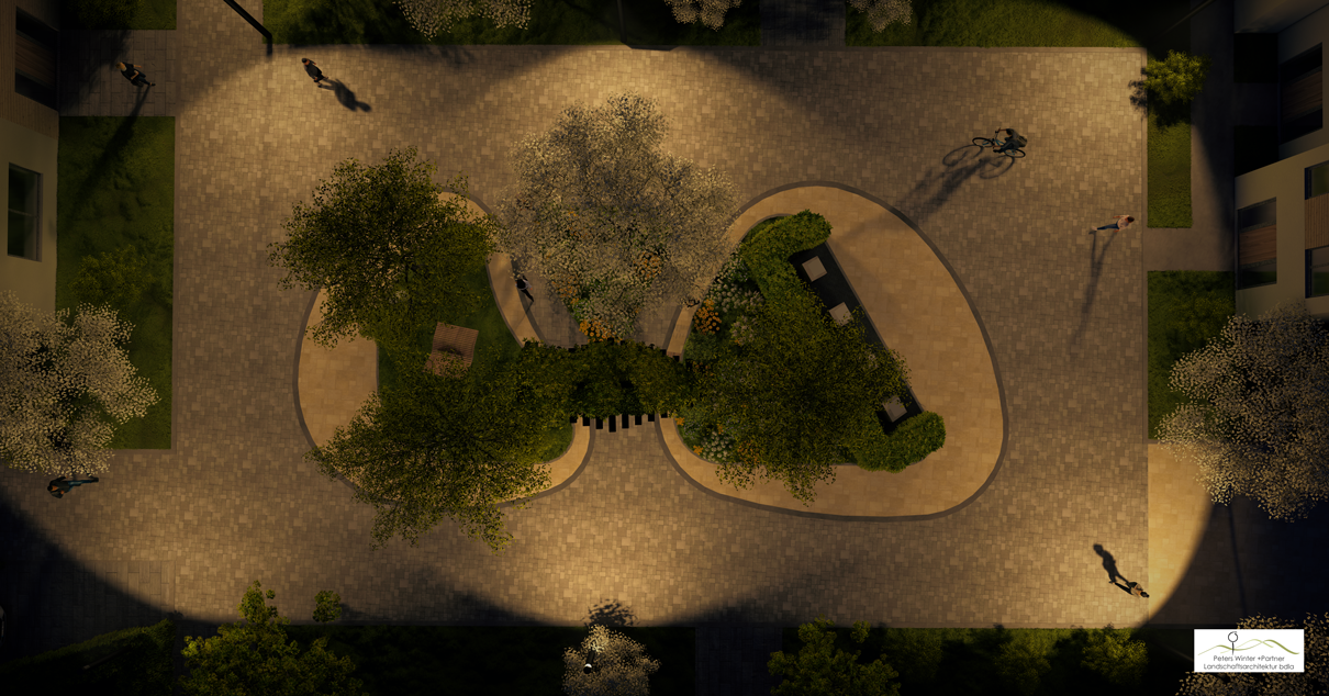 Die Quartiersplätze verbinden soziale, funktionale und ökologische Ziele auf harmonische Weise. Sie stärken die Identität des Quartiers, schaffen Aufenthaltsqualität, bieten Treffpunkte für Begegnungen und regen Fantasie und Spiel an. Gleichzeitig tragen sie zur Klimaanpassung bei, fördern die Artenvielfalt und ermöglichen nachhaltige Entwässerung. So entstehen lebendige Räume, die von Kindern, Erwachsenen und Nachbarschaften gleichermaßen genutzt und geschätzt werden und das Quartier in seiner Gesamtheit prägen.