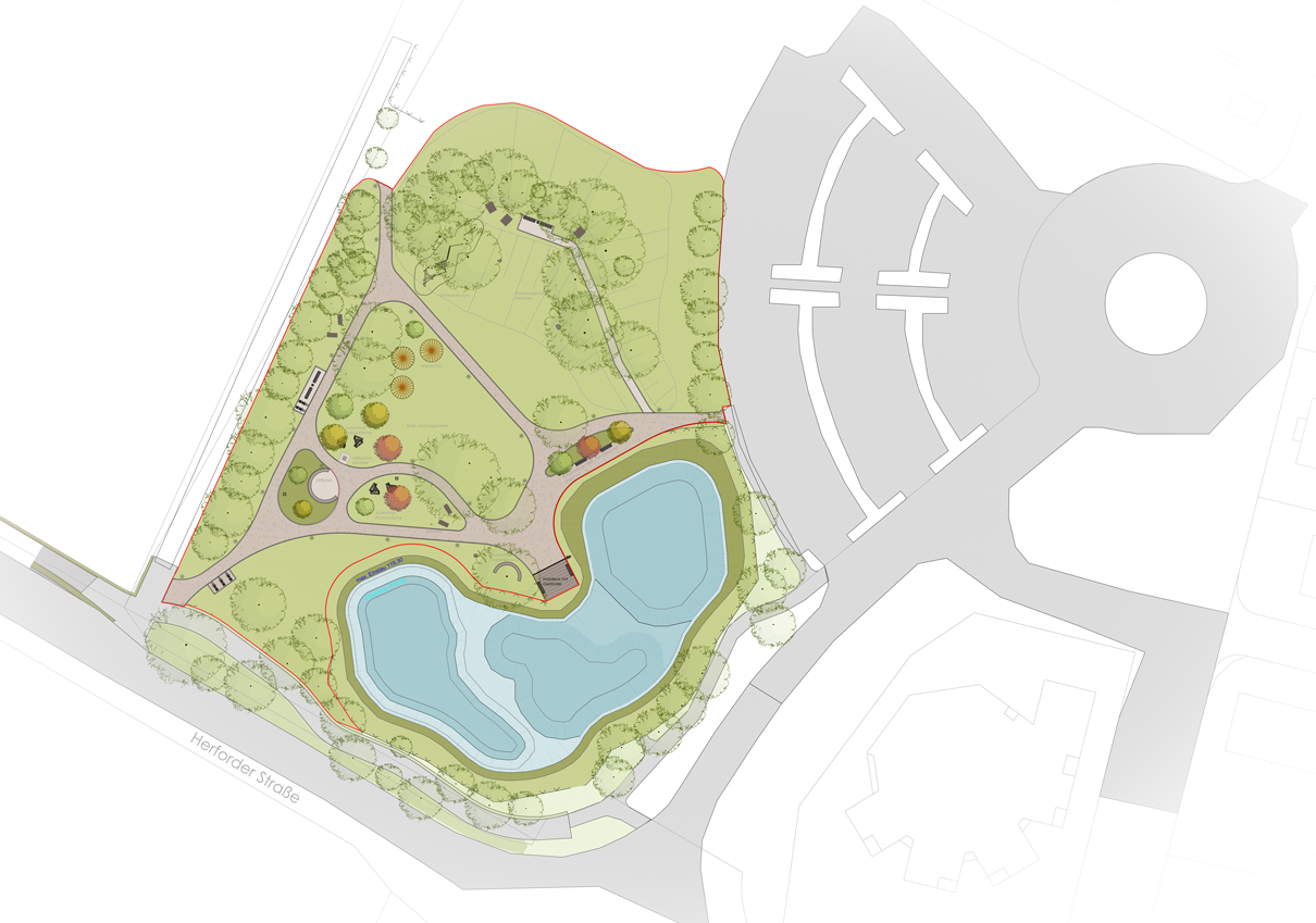 Die Parkanlage an den Schulteichen in Leopoldshöhe verwandelt sich in einen lebendigen Kunst- und Naturpark, der zum Entdecken, Spielen und Verweilen einlädt. Zwischen Schule, Kindergarten und zentralem Kreisverkehr entsteht ein grünes Bindeglied aus Naherholung, Begegnung und Quartiersverbindungen.